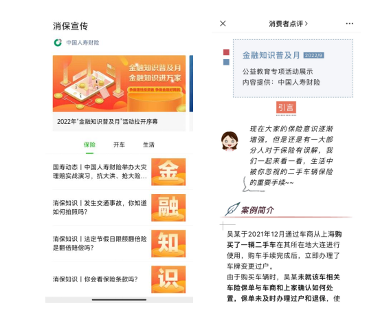 在做好金融知识普及“五进入”活动的同时,中国人寿财险充分利用公司各类线上渠道,借助数字化技术手段,探索疫情防控常态化形势下金融知识普及工作新载体、新模式。