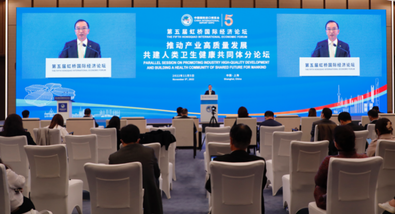 虹桥国际经济论坛是中国国际进口博览会的重要组成部分,“推动产业高质量发展,共建人类卫生健康共同体”分论坛由商务部主办,旨在为促进全球实现可持续发展和包容性增长、建设全球公共卫生治理体系和共建人类卫生健康共同体,提供富有建设性的对话机遇。