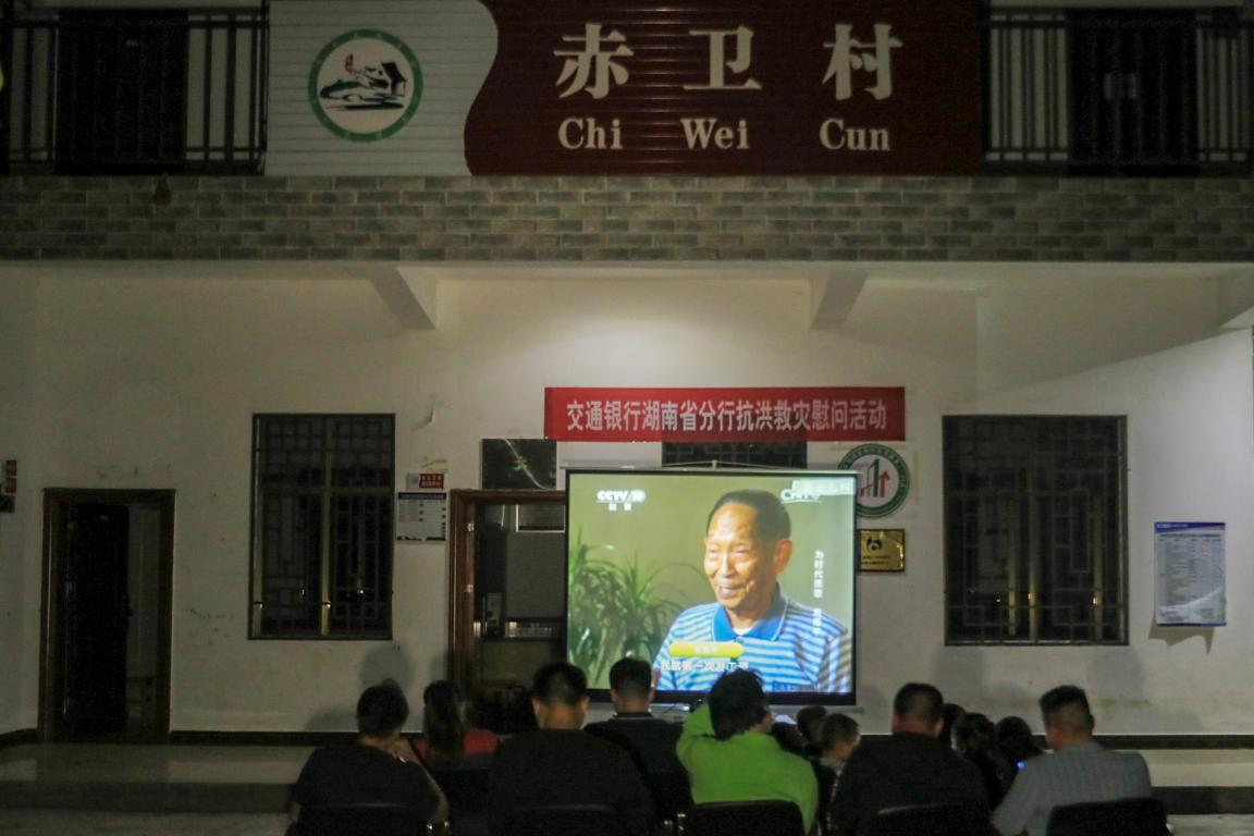 为了丰富村民文化生活,工作队定期在村委会前播放好电影好节目,与村民的关系也日益融洽 朱辉峰摄