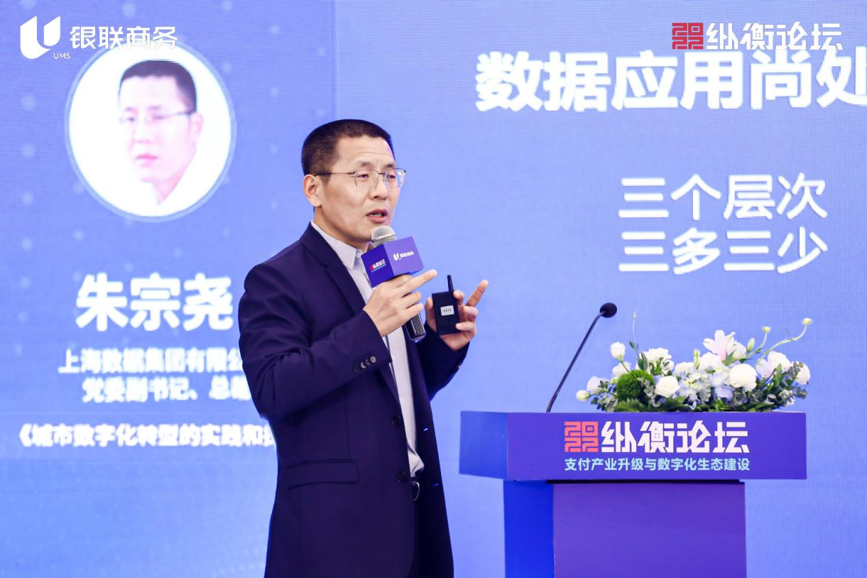 朱宗尧在演讲中回顾了数字社会建设的上海实践历史,整体介绍上海基于“经济数字化、生活数字化、治理数字化”三个总则,围绕数据应用、数据价值、数据确权以及多层次多样性数据要素市场探讨数字产业生态新模式,深入浅出地分享了对城市数字化转型的探索和思考。