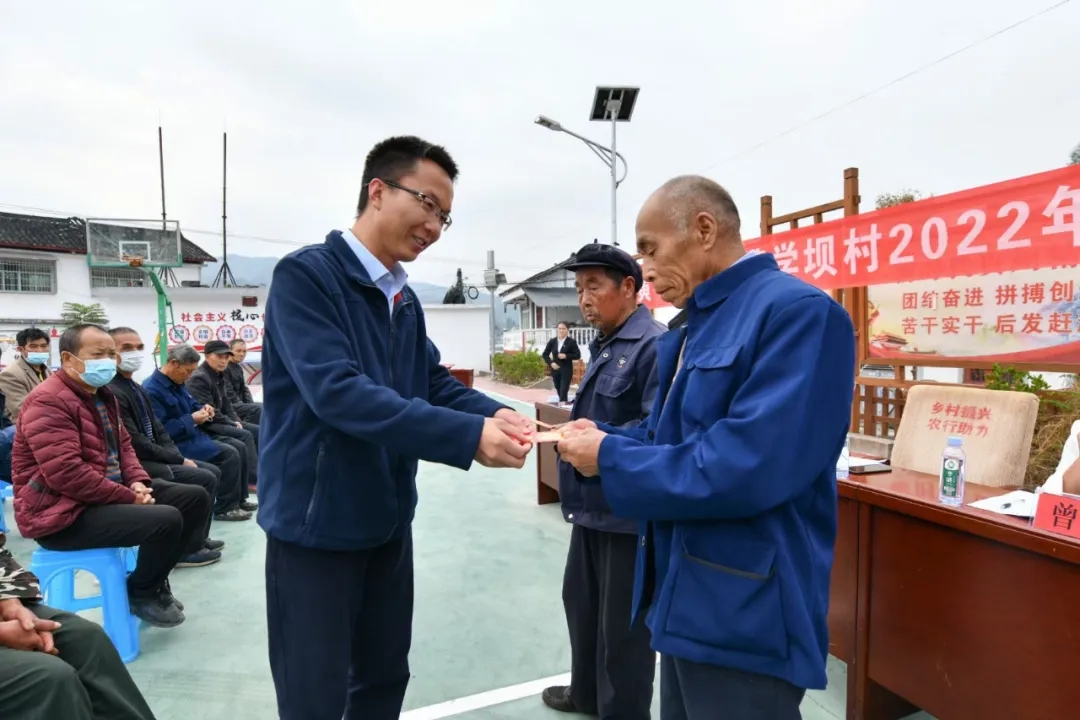 学坝村正在举行2022年农业银行帮扶产业项目收益分红大会