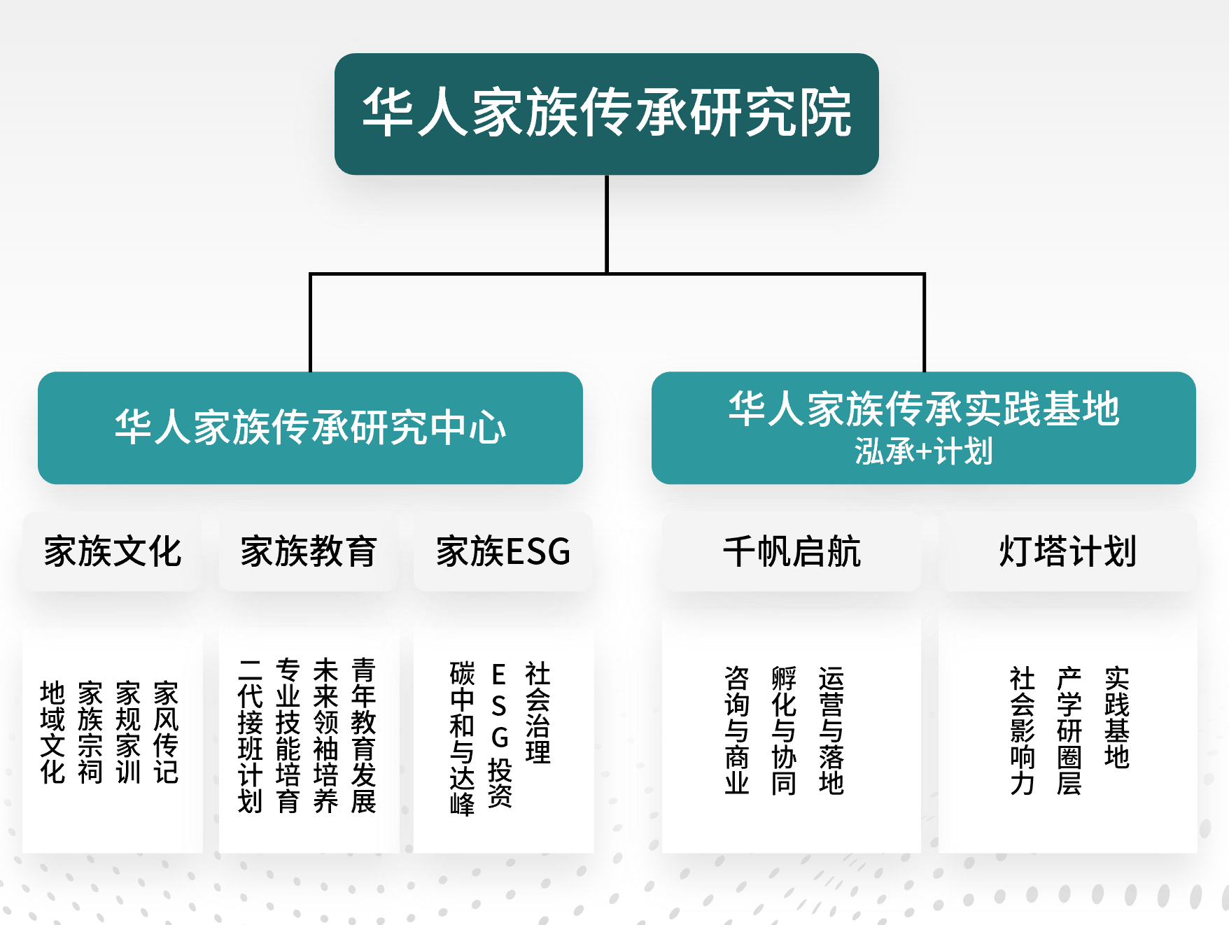 2022年,泓湖百世全球家办为深入研究以地域文化为基础的华人家族文化以及家族教育、家族ESG等,发起设立《华人家族传承研究院》,联合各大高校相关专家学者,输出研究报告、白皮书、论坛、课程等研究成果,在实践层面,给与对单一家族家族宪章等家族文化传承以强有力的指导依据,并形成独有的家族财富传承、企业传承及公益慈善方案。