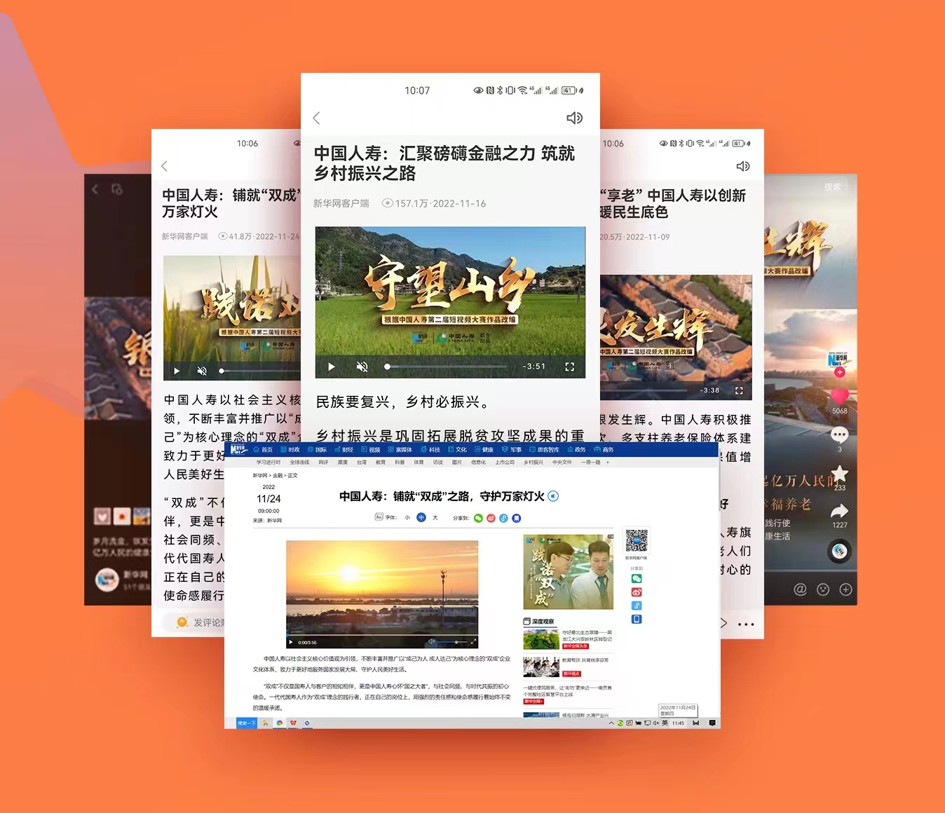 传播过程中,中国人寿携手新华网,在多平台的自媒体矩阵联合发布,借中心化媒体,做中心化表达,聚合传播能量,最终,三条共创内容反响热烈,总播放量达1.2亿次。