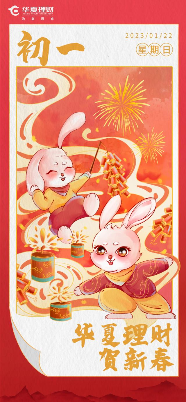 兔年大吉喜气临,昂首阔步迎春来。华夏理财恭祝广大投资者兔年吉祥、万事如意!