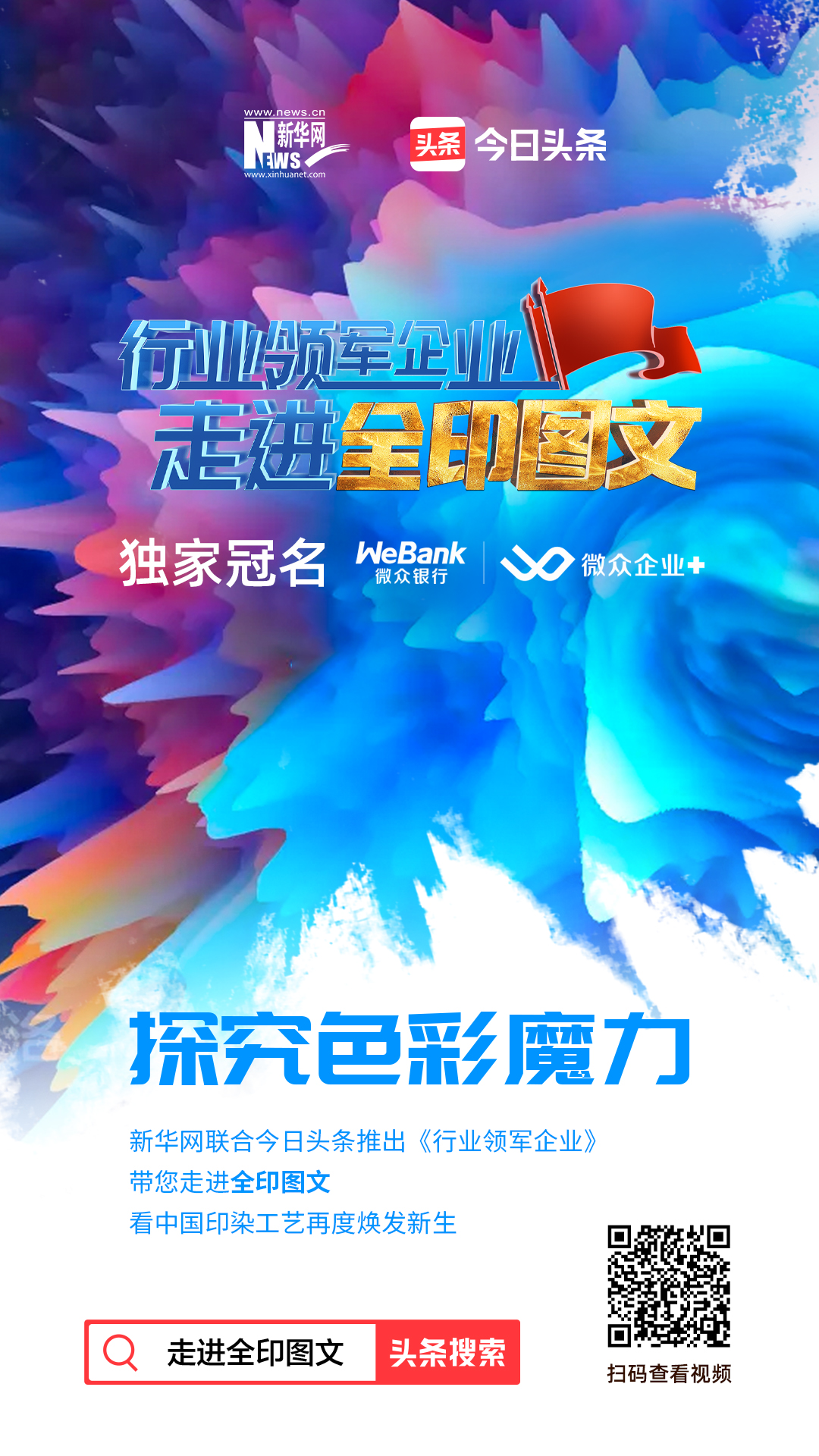 我们生活在一个五彩斑斓的世界,从琳琅满目的产品包装到颜色各异的衣服,再到纹路精致的家居墙面等等,色彩无处不在,它是我们表达自我认识的方式,五彩缤纷生活的背后离不开印染技术的发展。近日,由微众银行微众企业+独家冠名,新华网联合今日头条共同打造的《行业领军企业》第一期将带您走进全印图文,探究色彩魔力,看中国印染工艺再度焕发新生!