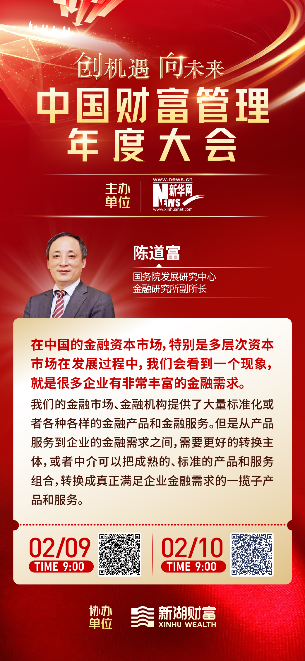 2月9日—10日,由新华网主办、新湖财富协办的中国财富管理年度大会在线上举行。国务院发展研究中心金融研究所副所长陈道富出席活动时表示,构建良好行业治理是健全资本市场功能的关键。要通过更好的治理,使资本市场各方力量形成良性循环,发挥更全面的功能,服务国家战略。