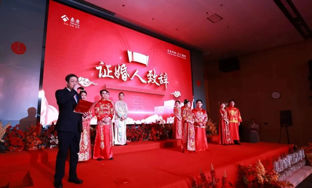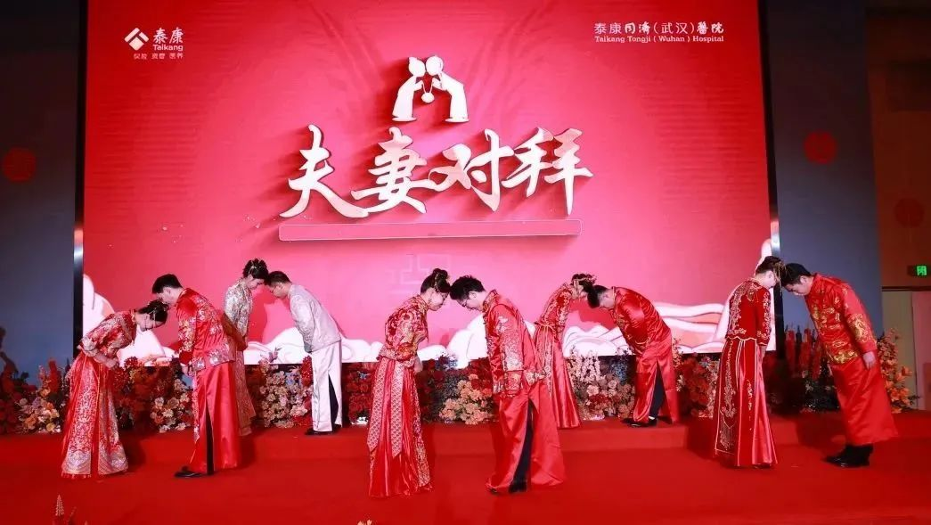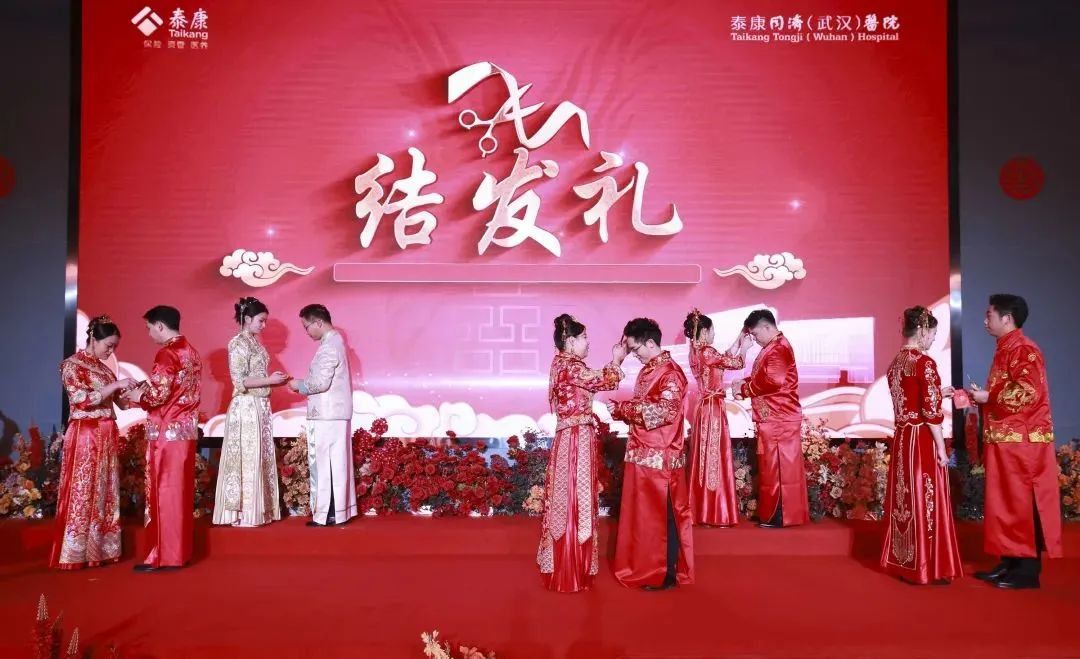 当天下午5点左右,“一世情缘,泰康相伴”泰康同济(武汉)医院首届集体婚礼正式开始,5对新人身着中式礼服陆续登台,经过挑盖礼、三拜礼、结发礼等中国传统仪式后,新人缔结良缘,携手步入人生新阶段。