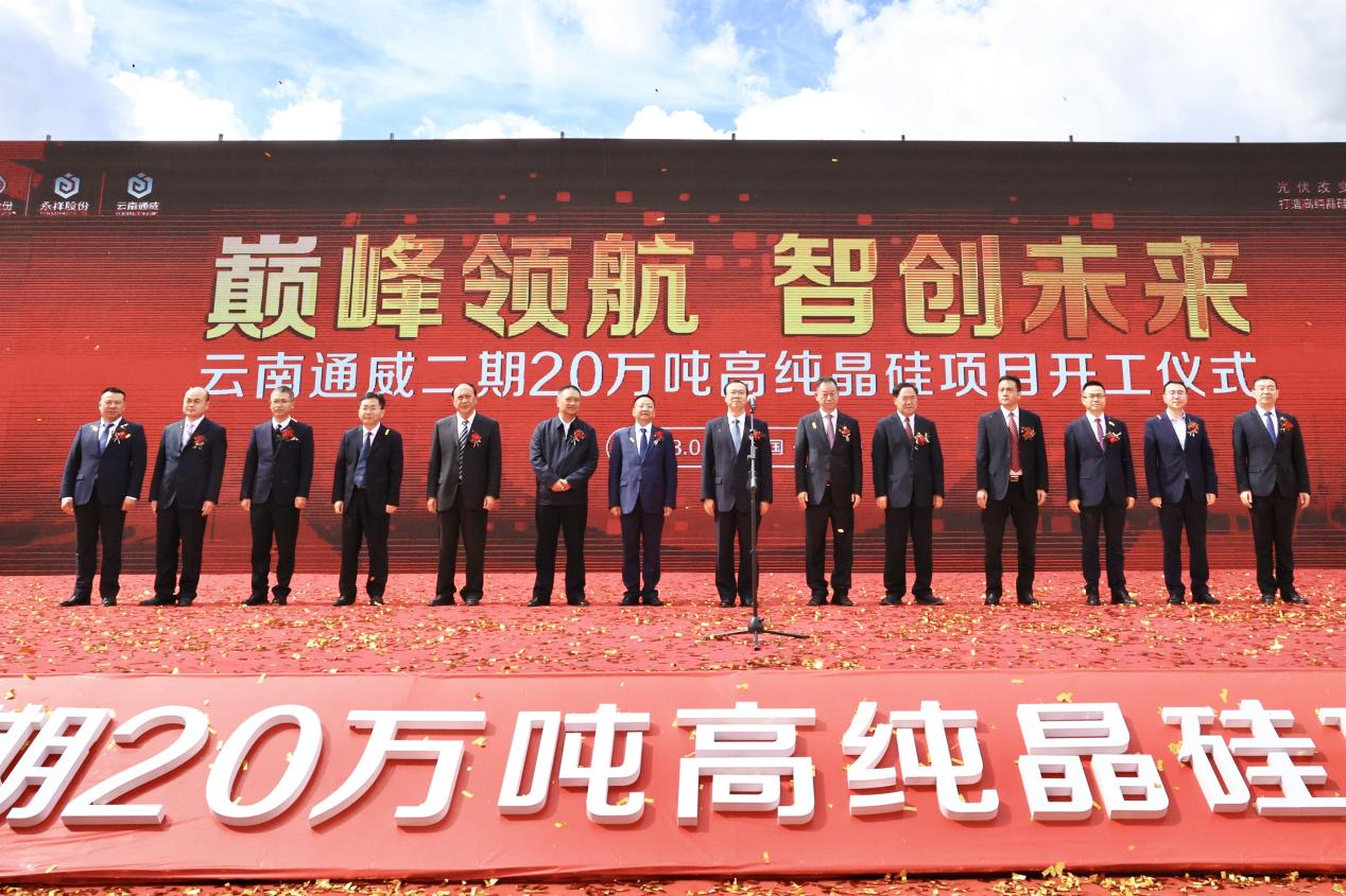 3月21日,云南通威二期20万吨高纯晶硅项目开工仪式在云南省保山市昌宁工业园区举行。保山市委书记杨军出席并宣布项目正式开工。保山市委副书记、代理市长陈锐,云南省工信厅副厅长保建彬,保山市人大常委会主任韩开柱,市政协主席朱宏春等出席并见证开工仪式。云南省、保山市、隆阳区、昌宁县、保山工业园区相关职能部门,公司业务合作单位,以及永祥股份、云南通威代表参加。