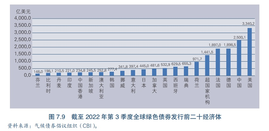 绿色金融是推动社会资源有效配置到绿色产业的重要手段。其中,绿色债券是为有利于环境项目相关活动融资、再融资的金融工具。博鳌亚洲论坛发布的《博鳌亚洲论坛亚洲经济前景及一体化进程2023年度报告》显示,截至2022年三季度,全球绿色、社会责任、可持续发展、可持续发展挂钩(SLB)和转型债券的累计发行量达3.5万亿美元。其中,符合气候债券倡议组织(CBI)定义的绿色债券累计发行量已突破2万亿美元。中国、印度和东盟国家成为新兴市场最为活跃的绿色债券发行人。