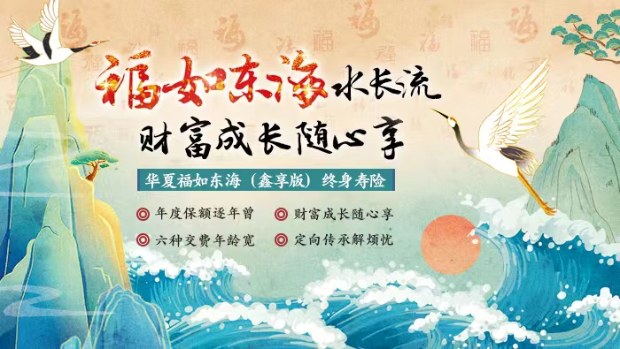 作为华夏人寿银保渠道“C”位产品,契合财富管理需求的增额终身寿险,华夏福如东海(鑫享版)终身寿险助力客户打造适合各种家庭的资产管理方式,构筑财富安全重要防线。(推广)