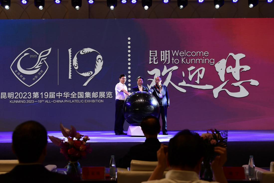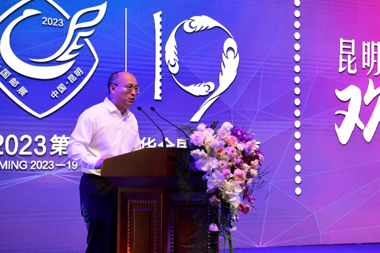 珍邮耀春城,集藏品天下。4月27日上午,2023第19届中华全国集邮展览在云南昆明滇池国际会展中心开幕。十二届全国政协副主席、中国福利会主席王家瑞,国家邮政局副局长、中华全国集邮联合会会长戴应军,中国邮政集团有限公司副总经理康宁,云南省政协原副主席董华,山西省政协原副主席吕日周,中华全国集邮联合会常务副会长赵晓光,昆明市委常委、副市长安恩法以及来自全国邮政行业、全国集邮界、云南省和昆明市等有关方面代表参加开幕式。国际集邮联合会主席、亚洲集邮联合会主席普拉科·吉拉凯特,国际集邮联合会荣誉主席郑炳贤也应邀出席。