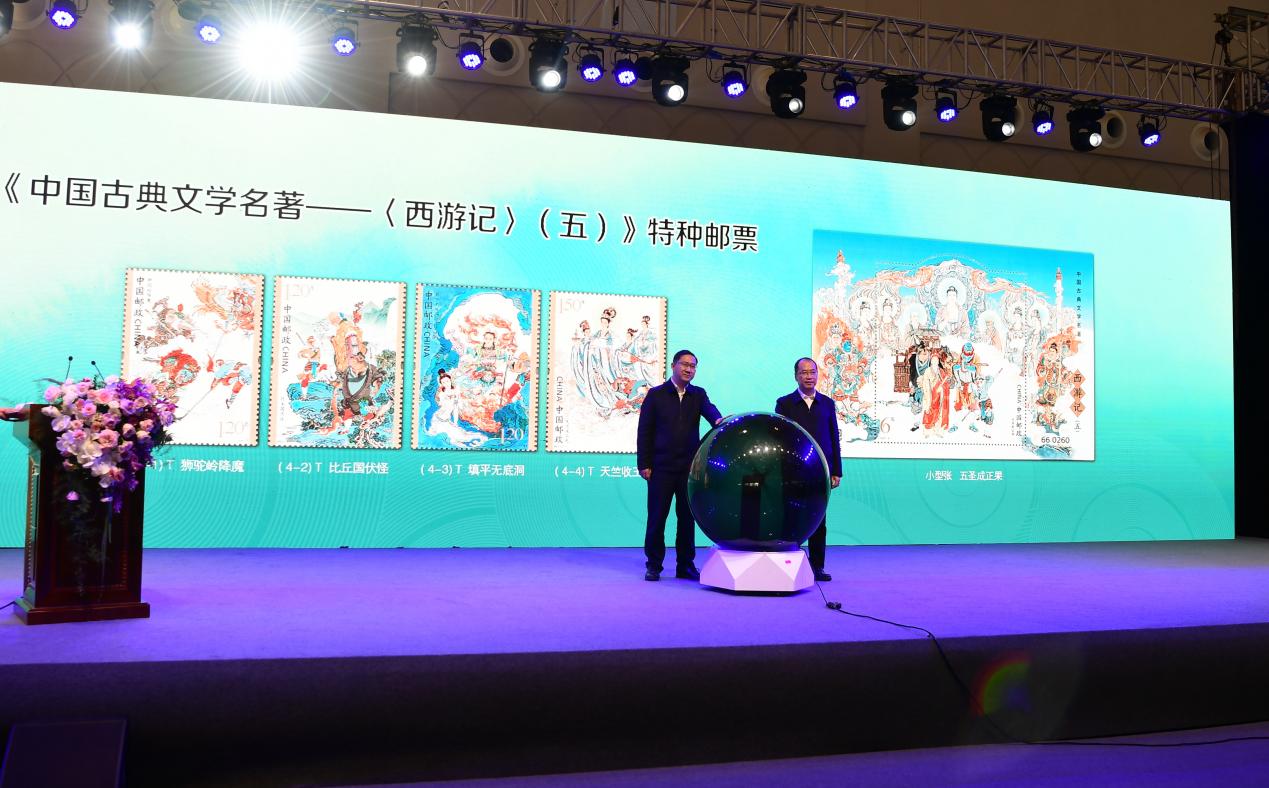 集团公司和中华全国集邮联合会相关领导为《中国古典文学名著—<西游记>(五)》特种邮票揭幕。