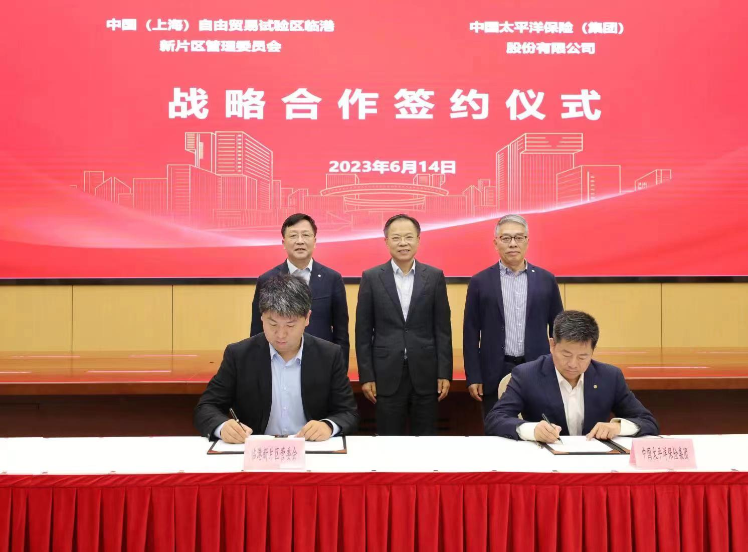6月14日,中国太保董事长孔庆伟带队走进临港新片区,与临港新片区管委会深度交流并签署战略合作协议。上海市委常委、临港新片区党工委书记、管委会主任陈金山,孔庆伟与中国太保产险董事长顾越共同见证签约。
