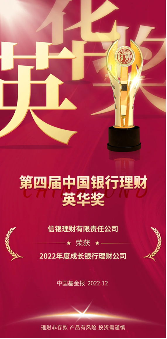 在第四届中国银行理财英华奖评选中,共有18家银行和银行理财公司获奖,其中只有3家获评2022年度成长银行理财公司,信银理财此次获奖集中体现了近一年的发展成果。