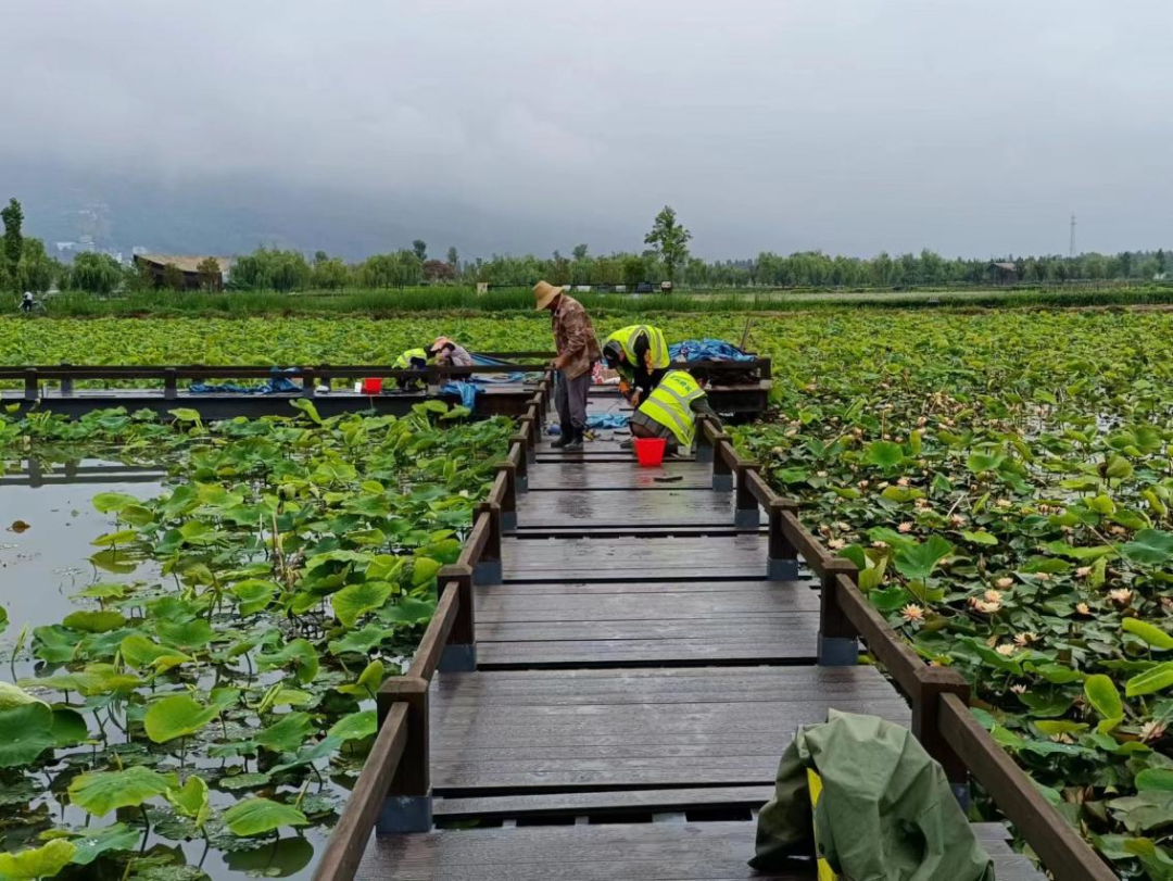 麒麟水乡景区正在对千亩荷塘进行修缮