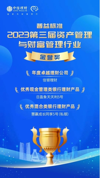 近日,慧聚资管动力 智启财富篇章——2023资产管理与财富管理行业发展大会暨第三届‘金誉奖’颁奖典礼”在成都举行,信银理财获“2022年度卓越理财公司”“优秀现金管理类银行理财产品”“优秀混合类银行理财产品”三项大奖。