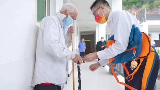 泰康溢彩志愿者发放“一根拐杖”防跌倒包,守护老人安全健康