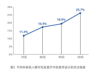 不知道是不是巧合,《蓝皮书》调研数据中,有超过四分之一的年轻人群与女性消费者将目光投注到了一件事上:毛发医疗中的美学设计。