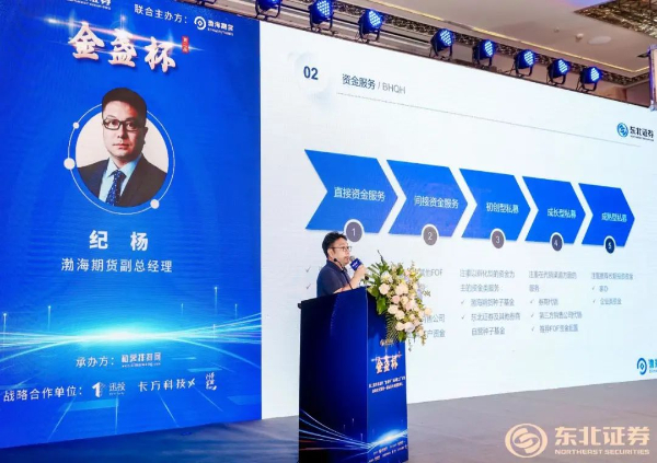 在现场众多来宾的见证下,东北证券第一届“金盏杯”私募实盘大赛颁奖。与此同时,在全体人员的见证和掌声下,第二届东北证券“金盏杯”私募星工厂计划正式启动。东北证券私募专班负责人谢艳娟、渤海期货副总经理纪杨分别对第二届私募星工厂计划、渤海期货私募客户服务体系等内容及亮点进行了介绍。