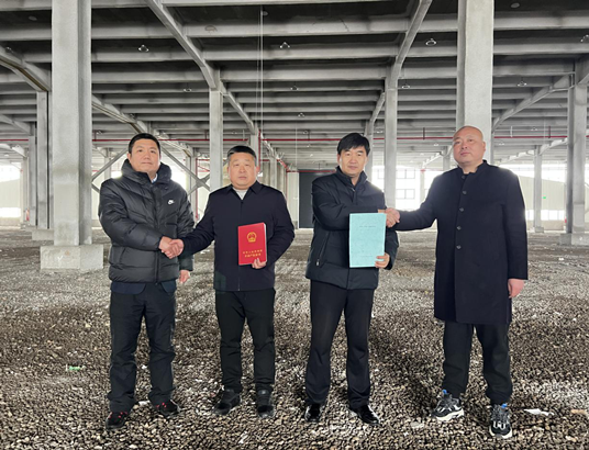 “企业零跑腿、服务送上门”是今年丰县行政审批局开展全周期服务的又一新举措。近日,江苏丰县行政审批局企服中心联合县资规局、住建局相关人员来到徐州聚势智诚科技产业园运营管理有限公司,将该公司投资建设的丰县牛蒡产业园二期项目10号标准房竣工验收备案表和不动产权证书送到了企业负责人李兆辉手中,并向他们送去新年的祝福。