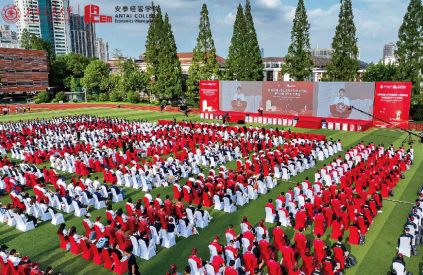 学院始终牢记为党育人、为国育才使命,已形成涵盖全日制本硕博和MBA、EMBA、MTT、高管教育等各级各类教学模式的高素质专业化全方位人才培养体系,图为2023年9月上海交通大学安泰经济与管理学院研究生开学典礼。