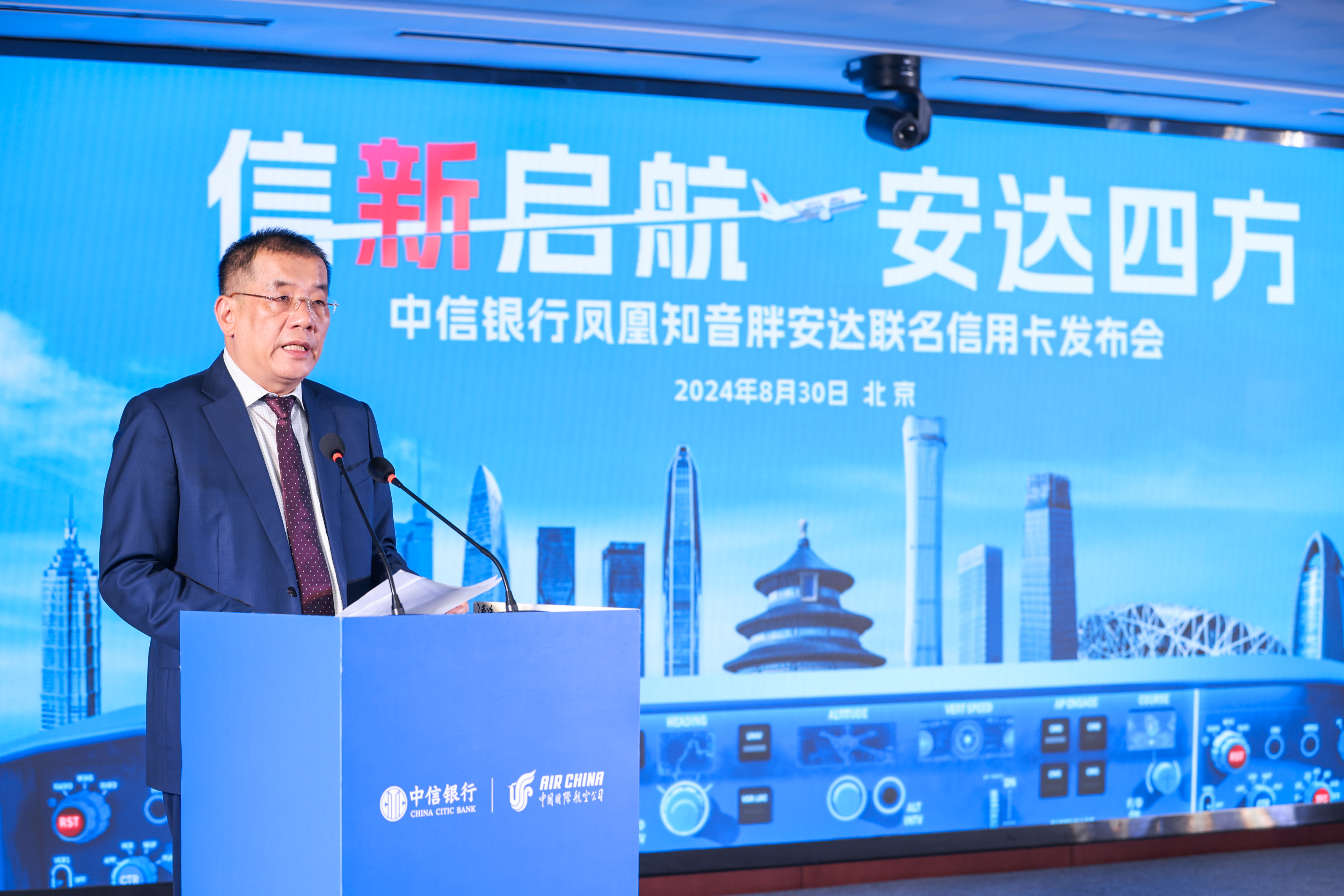 8月30日,中信银行携手中国国际航空公司(以下简称“国航”)在北京中信大厦召开发布会,全新推出“中信银行凤凰知音胖安达联名信用卡”,为广大商旅人士和旅游爱好者带来便捷、舒适、有温度的出行消费新体验。此次合作依托中信银行金融服务的特色优势,以及国航的航旅出行卓越服务体验,双方再度携手,面向国内年轻的商旅用户客群,全新升级“金融+商旅”生态服务体系。新品发布会现场,中信集团副总经理、中信银行董事长方合英,中航集团总经理、党组副书记王明远,中信银行党委委员、副行长吕天贵,国航商务委员会主任、党委副书记梁爽,中信银行信用卡中心总裁李志涛,国航商务委员会副主任、党委委员崔红强等双方高层代表出席,共同为新品揭幕。