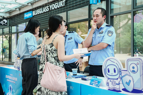 活动通过“快闪咖啡店”的形式,趣味性融入网络安全科普,吸引了附近办公楼里众多职工参与。除此之外,不少市民来到摊位区与民警、律师互动,进行公益法律咨询,并领取小礼品。