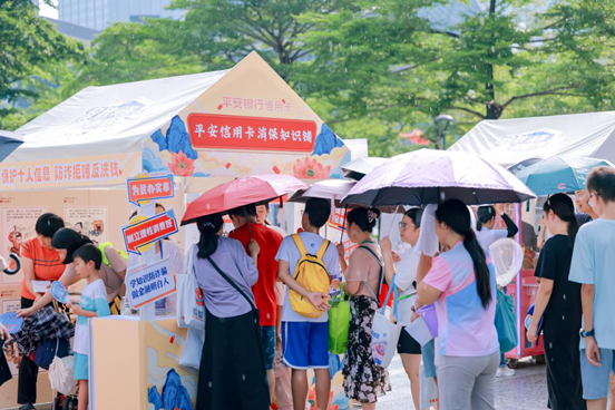 针对城市商圈,平安银行信用卡中心结合商圈特点,开展贴合商圈文化的金融宣教活动,例如在深圳中心书城开展“金秋消保”创意市集活动,精心打造“消保知识铺”,吸引公众对金融消保的关注,助力提高公众的自我保护能力,并设置轻松有趣的反诈互动游戏,让更多市民边玩边学,收获满满的“金融干货”。