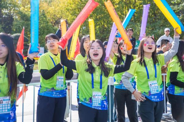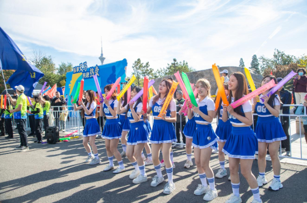 “加油!加油!”“你们是最棒的!”“坚持就是胜利!”“冲啊!”欢呼声、打call声此起彼伏。赛道内,参赛者斗志昂扬、激情澎湃,赛道外,天津银行助威加油站热情似火。