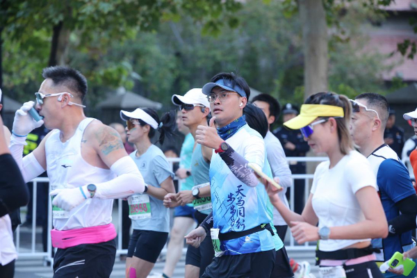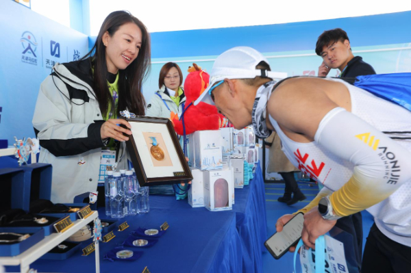“对着镜头!比个耶!”天津银行赛后服务区拍照打卡、号码牌塑封服务,吸引广大参赛者驻足参与,定格突破自我、超越极限的美好瞬间,封存难忘的天马记忆与荣耀。