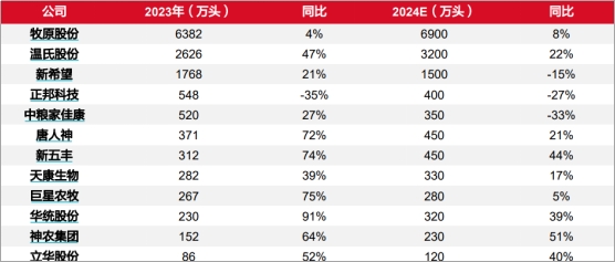 部分上市猪企出栏量预计。资料来源:Wind, 东海证券研究所整理