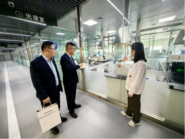 高雨(左二)与同事走访益益乳业参观智能化新工厂