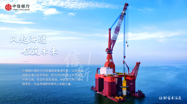 为响应国家“双碳”目标,助力海上风电建设,中信银行福州分行充分发挥金融职能,于2023年9月实现了正力海洋发展(深圳)有限公司“3500吨海上风电安装平台”项目首笔2.32亿元贷款投放,助力“金融活水”流入“海洋经济”。