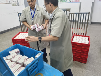 分行工作人员为营业网点配发新钞,满足客户新钞使用需求