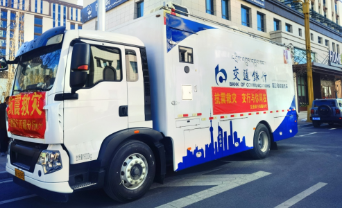 交行移动银行车赶赴灾区,提供便民金融服务