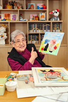 而就在百公里外的大家的家·北京朝阳城心社区,另外两位长者也在用自己独特的技艺,创造出一件件让人拍案称绝的艺术品。生性乐观爱笑的任秀敏,凭借多年研习国画的造诣,将看似毫无关联的碎布层层堆叠,绘制出了似锦繁华、满园春色。秉持着“一学、二干、三认真”人生态度的高忠明,深耕书法20年,凭借着独特的书法风格已成为社区内长者们的“老师”。他手持一杆妙笔,挥洒自如间写下对丰盈岁月的美好祝福。
