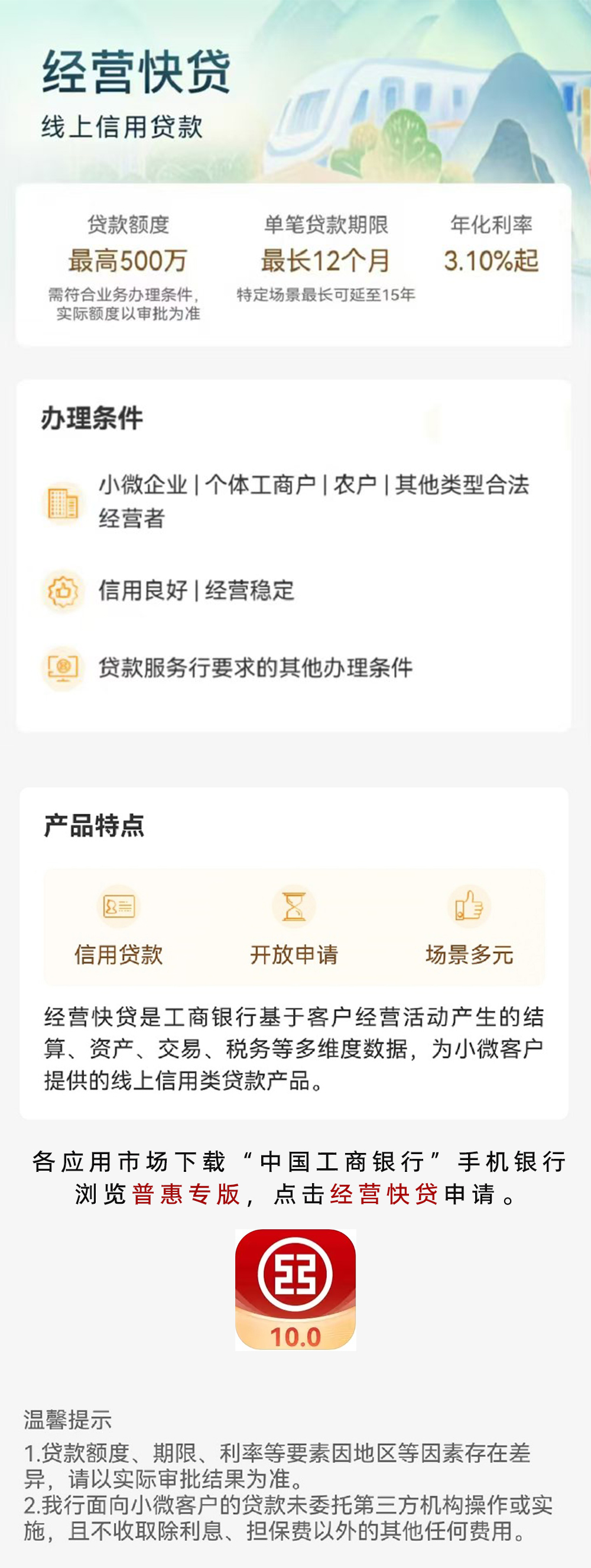 工商银行经营快贷,助力春耕,服务小微,开放申请