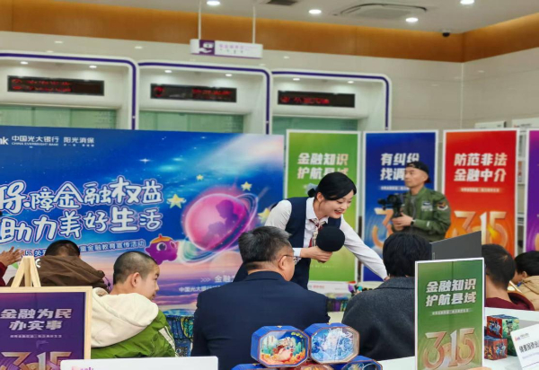 “保障金融权益 助力美好生活”。今年“3·15”金融消费者权益保护教育宣传活动期间,中国光大银行深入践行“金融为民”理念,以增强社会公众维护自身合法权益的意识和能力为目标,在全国各地组织开展了丰富多样的宣教活动,以实际行动做好金融消费者权益保护工作。