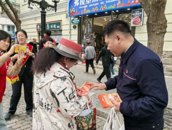 黑龙江分公司党员突击队在中央大街向群众开展金融知识宣讲