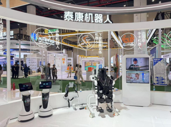现场亮点之一当属机器人展区:达芬奇手术机器人展示微创手术精度突破,下肢智能训练机器人提供沉浸式康复体验,全球首款端到端模型具身机器人“泰咖啡师”现场演绎自主冲泡咖啡全过程,其动态环境感知与任务执行能力达到国际领先水平。只需对他说一声“小泰,能给我来杯咖啡吗”,一杯美味的咖啡就会呈上。