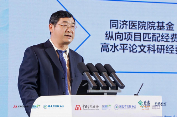 华中科技大学同济医学院附属同济医院院长胡俊波以《构建科技创新体系 打造高质量发展“新质生产力”》为题的作报告,介绍同济医院历史传承及助力新质生产力发展建设的创新举措。