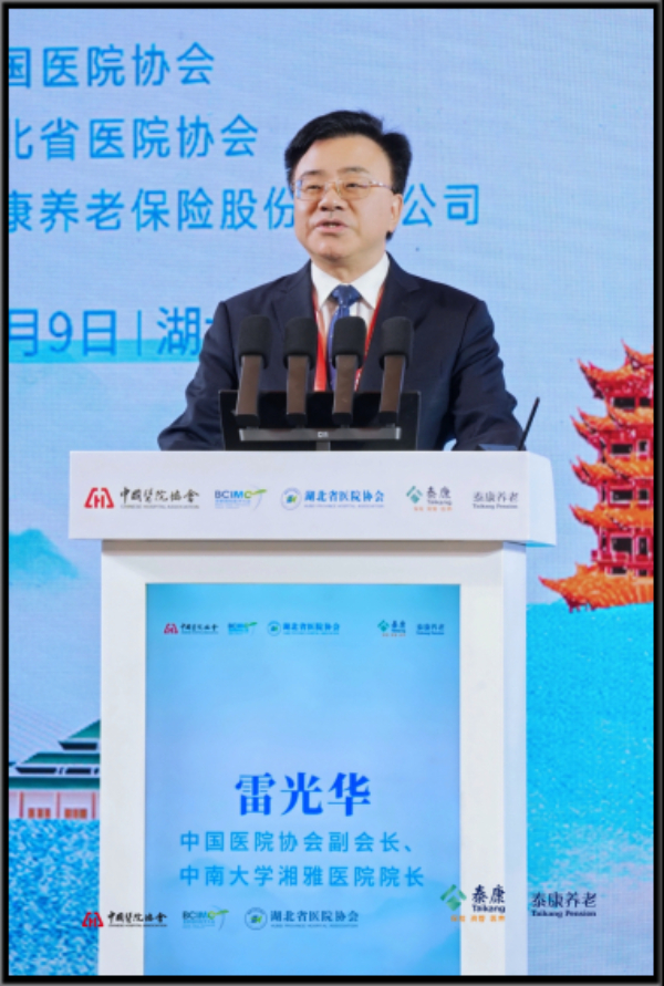 中国医院协会副会长、中南大学湘雅医院院长雷光华就《医学创新驱动高质量发展》展开演讲,分享中南大学湘雅医院创新推出的“321”医学体系。