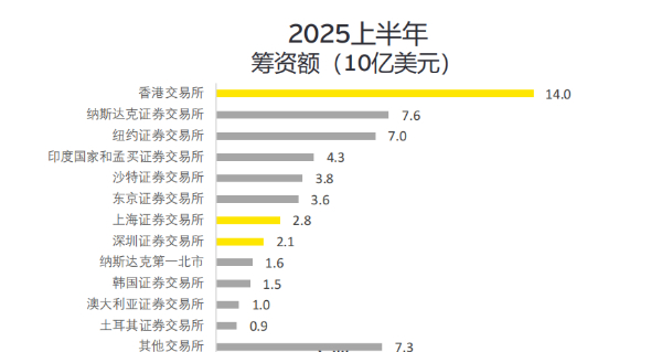 安永近日发布的《中国内地和香港IPO市场》报告指出,中国内地和香港地区IPO活动的全球占比上升。其中,2025年上半年,香港IPO表现亮眼,筹资额占全球总筹资额的24%,与A股合计占比达33%,香港交易所以140亿美元募资规模在全球证券交易所排名中位列第一,较去年出现较大涨幅。