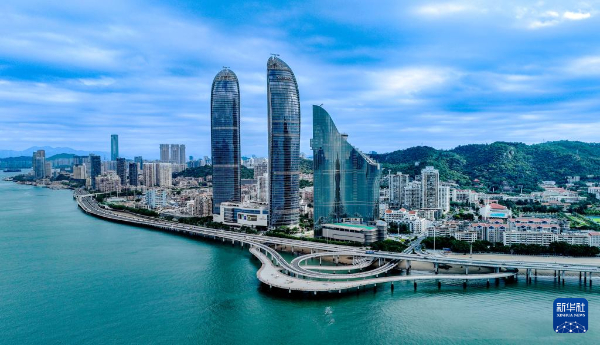 厦门市演武大桥附近海面和环岛路沿线风光(无人机照片)。新华社记者魏培全摄