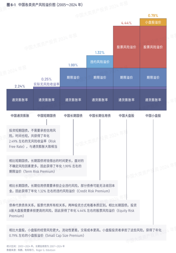 与Alpha的博弈属性不同,Beta收益本质是“参与即获奖”的市场基础红利。陈鹏指出,过去20年,我国股票类资产收益显著高于债券与货币,底层逻辑源于金融本质,股票投资者作为企业风险的最终承担者,天然享有盈利剩余索取权,而债券投资者优先获得固定利息。“Beta不是选择‘跑多快’,而是选择‘站在哪条赛道’。”陈鹏解释,股票风险溢价等核心数据,本质是市场为不同风险等级设定的“基础奖金”,投资者无需比拼聪明才智,只需通过指数基金等工具参与市场,即可分享经济增长的红利。绝大部分基金投资人的长期收益100%来自Beta(风险溢价),而不是alpha。