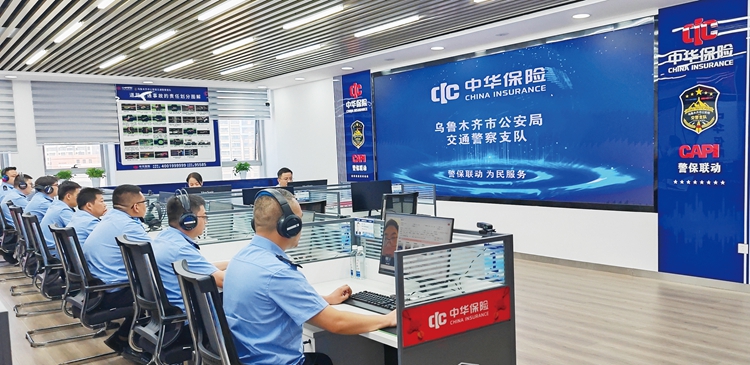 中华财险新疆分公司与公安部门创新推出“道路交通事故线上定责理赔一体化项目”,乌鲁木齐轻微交通事故视频快处中心开展线上定责(2024年8月20日摄)。图片由中华财险新疆分公司提供