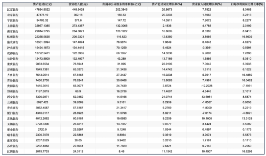 城(农)商行方面,资产规模实现稳步扩张,表现良好。其中,江苏银行总资产为4.79万亿元,增速达26.99%,两项经营指标均位列城商行首位;北京银行和宁波银行分别以4.75万亿元、3.47万亿元规模位列其后,资产增速分别达20.33%、14.39%。
