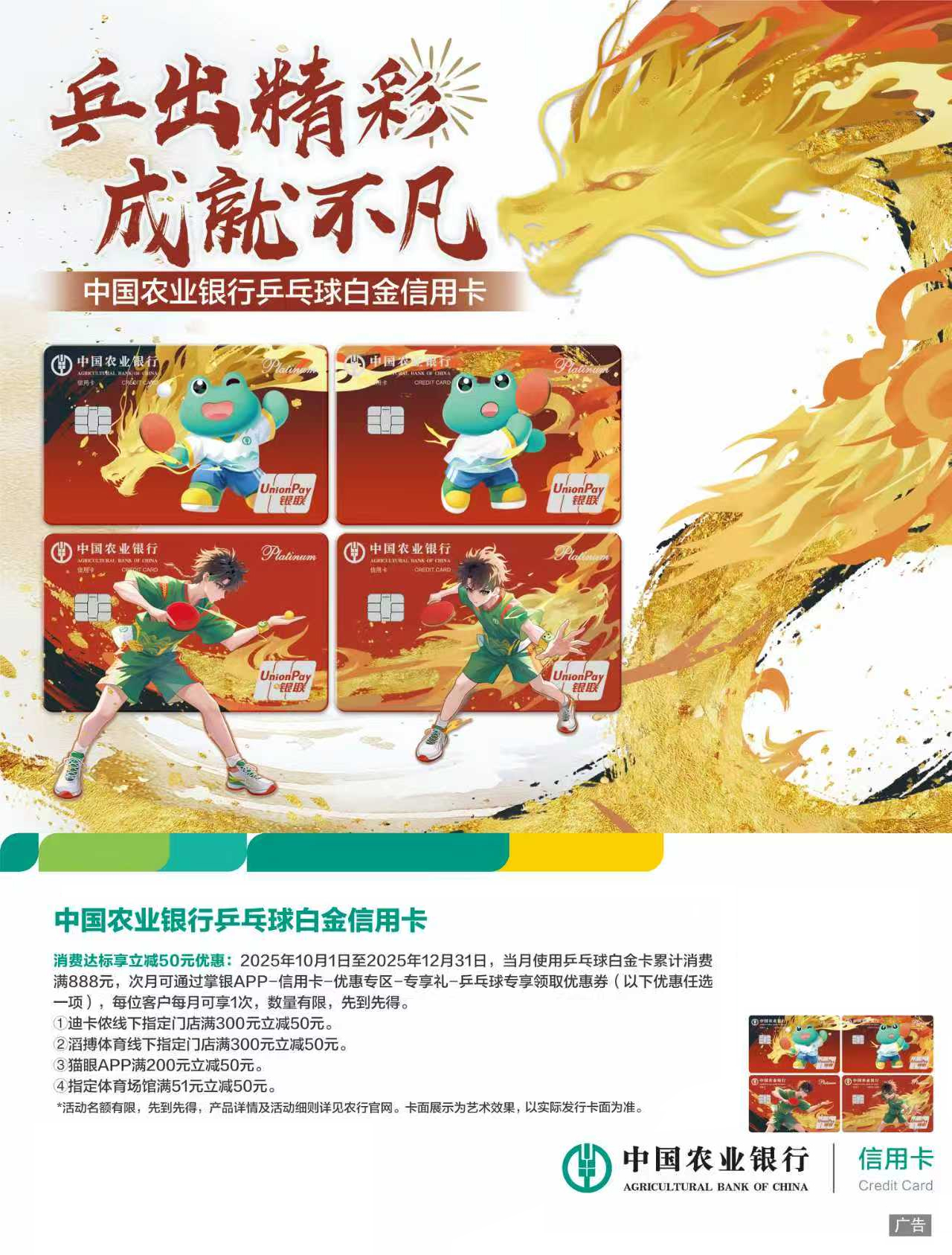 中国农业银行乒乓球白金信用卡:精彩成就不凡