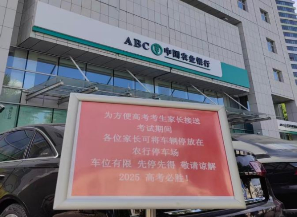 为缓解考点周边交通压力、化解家长们的停车焦虑,该行开展了助考“迎进来”活动,全面规划考点附近行内车位,免费供送考家长使用,更在高考前向全行员工发出绿色出行倡议,提出“绿色办公促节能降碳”的“守护”行动号召,争取以更多的车位服务考生和送考家长。在倡议的引领下,员工们积极响应支行号召,纷纷选择步行、骑行或公共交通出行,主动让出车位给送考家长。这一举措既是“农银公益”责任理念的具体体现,也是以实际行动践行“低碳生活”的公益主张。在农行的守护下,炎炎夏日里,送考家长在陪伴孩子迎考时,少了一份焦灼,多了一份从容。