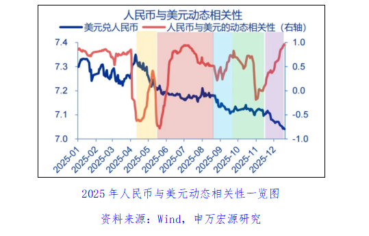 申万宏源证券首席经济学家赵伟认为,10月中旬以来,人民币经历了一波快速升值,但结汇率并没有显著走高。其团队研报分析称,10月至11月,在“三价合一”的背景下,央行重启逆周期因子、不断调升的中间价对升值有一定引导。而12月以来,美元再度走弱,人民币与美元的1个月动态相关性快速回升至0.95。